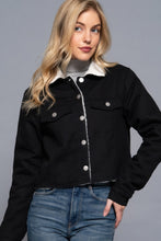 Stay cozy and stylish with our Button Closure Sherpa-Lined Twill Jacket, a perfect blend of comfort and sophistication. This long-sleeve jacket features a front button closure and is lined with soft sherpa, making it ideal for cooler days.