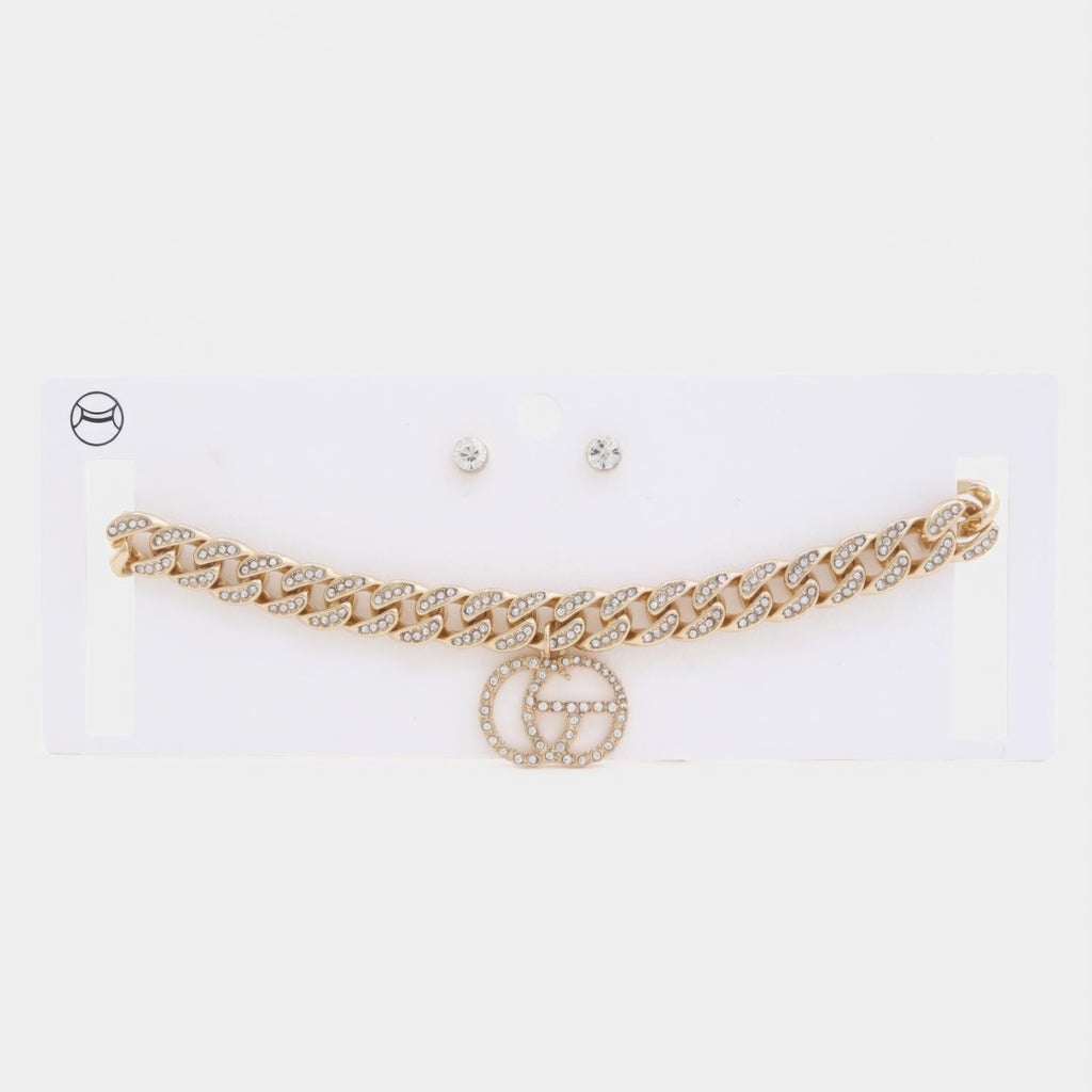 Make a statement with the DOUBLE CIRCLE RHINESTONE CHARM CURB LINK CHOKER NECKLACE, a glamorous piece that seamlessly blends classic charm with the brilliance of rhinestones. Choose between the timeless Gold or sleek Rhodium finish to suit your style.