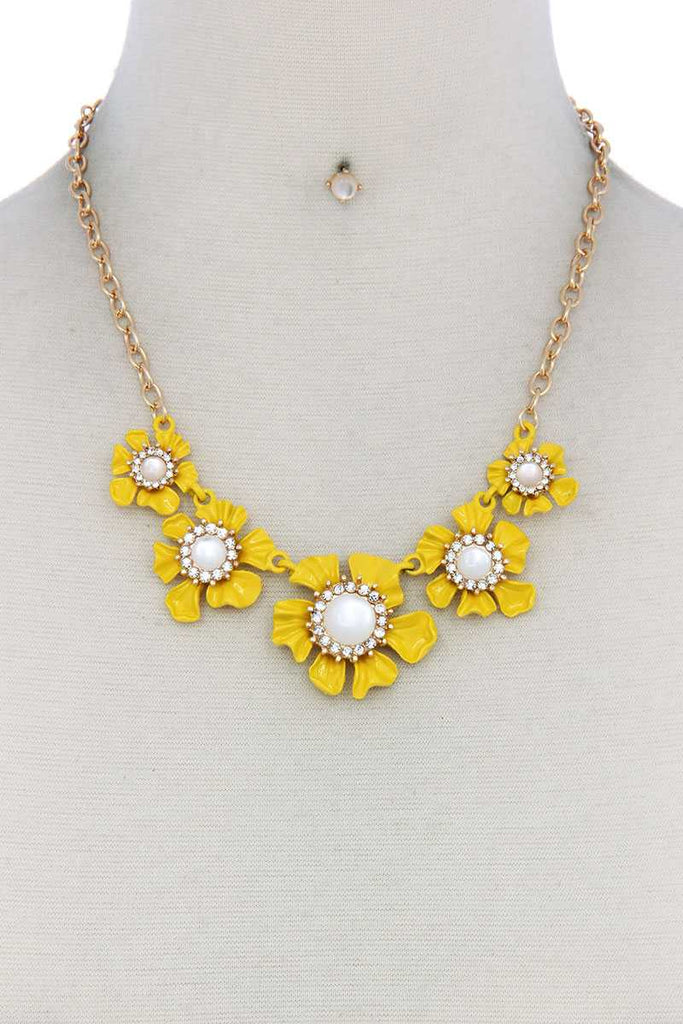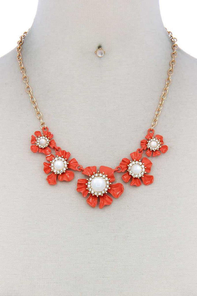 Enhance your accessories collection with our Floral Pearl Bead Necklace in Coral, Yellow, Cream, and Red. Add this timeless and elegant necklace to your ensemble for a touch of sophistication!