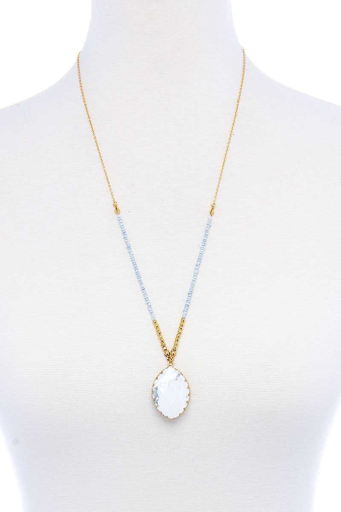 Elevate your style with the Designer Fashion Beaded and Stone Pendant Necklace in White Natural. Add it to your collection today for a touch of refined elegance and contemporary flair!