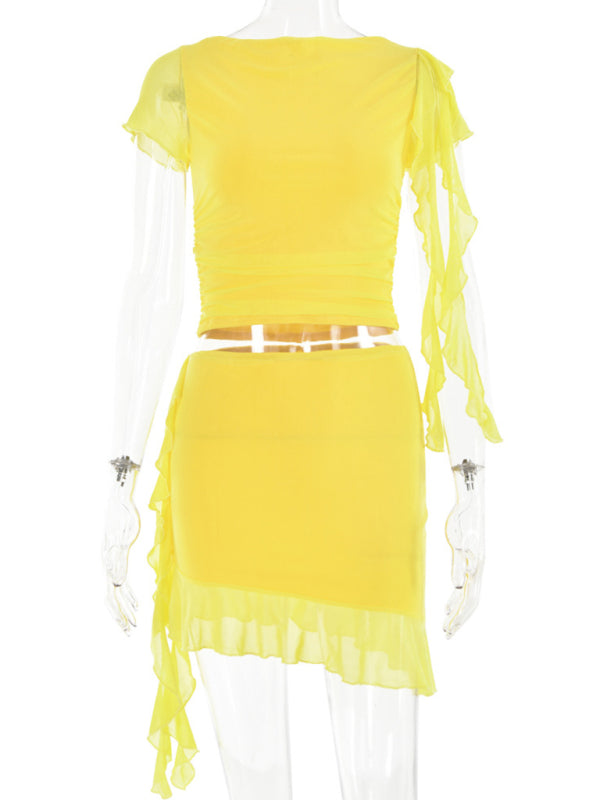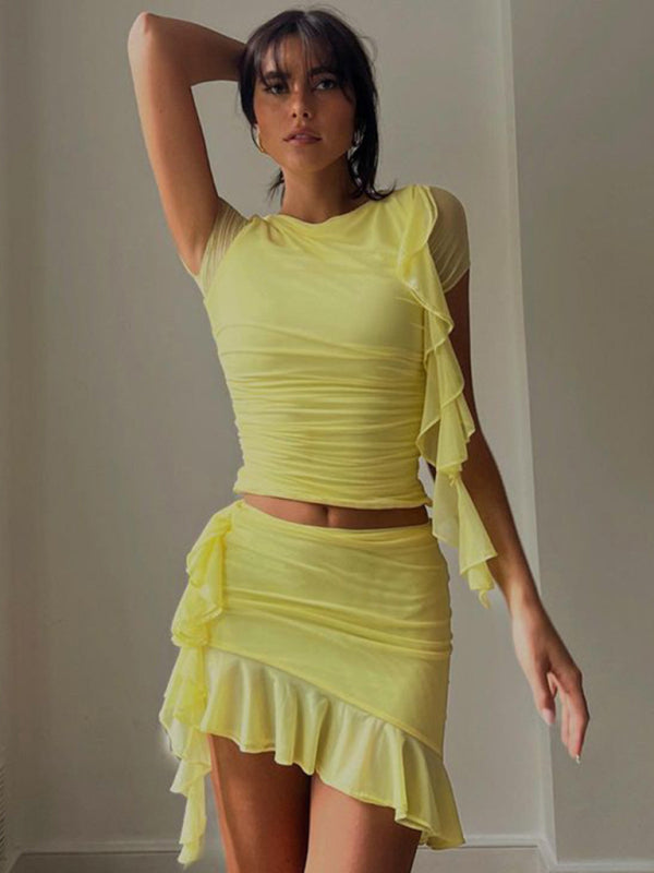 Feminine slim fit knitted skirt two-piece set. Please use the size guide shown in our pictures. Before choosing a size, please read each element of the size guide carefully. Unique design, classic style, casual and comfortable. It is suitable for outing and leisure. The size is measured manually, and the error of 1-3cm is normal.