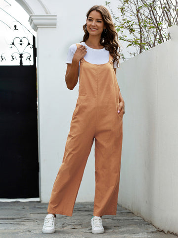 Women's woven simple and elegant long-sleeved waist jumpsuit