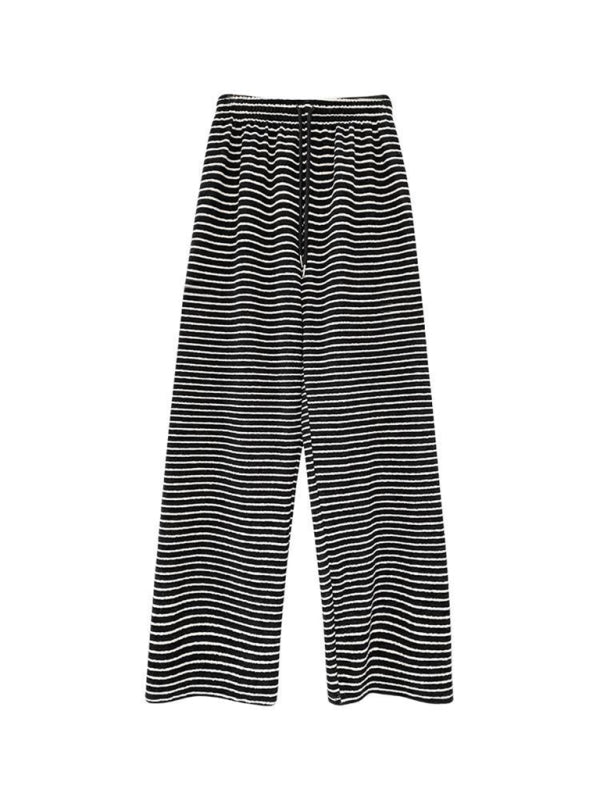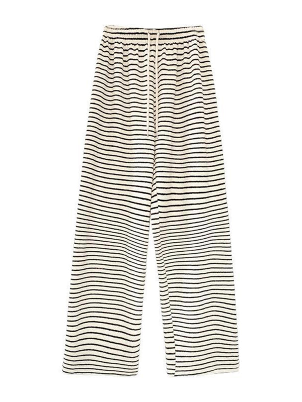Women's striped high-waisted straight-leg loose and draping lazy casual wide-leg pants. The simple design makes the boring season colorful and interesting. A variety of matching options make you confident and beautiful. Please use the sizing guide shown in our images when purchasing. Please read each element in the size guide carefully before choosing a size. Sizes are measured manually, and an error of 1-3cm is normal.
