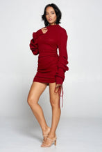 Experience the perfect blend of style and comfort with our Solid Color Mock Neck Mini Bodycon Dress. The thoughtful design, ruched sides, and drawstrings set this dress apart, offering a trendy and versatile addition to your wardrobe.