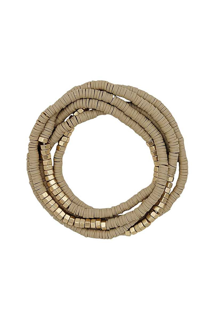 Perfect for casual outings, social events, or adding a pop of color to your everyday style—the Metal Rubber Disc Bead Stretch Multi Bracelet 5 Pc Set enhances your accessory game.