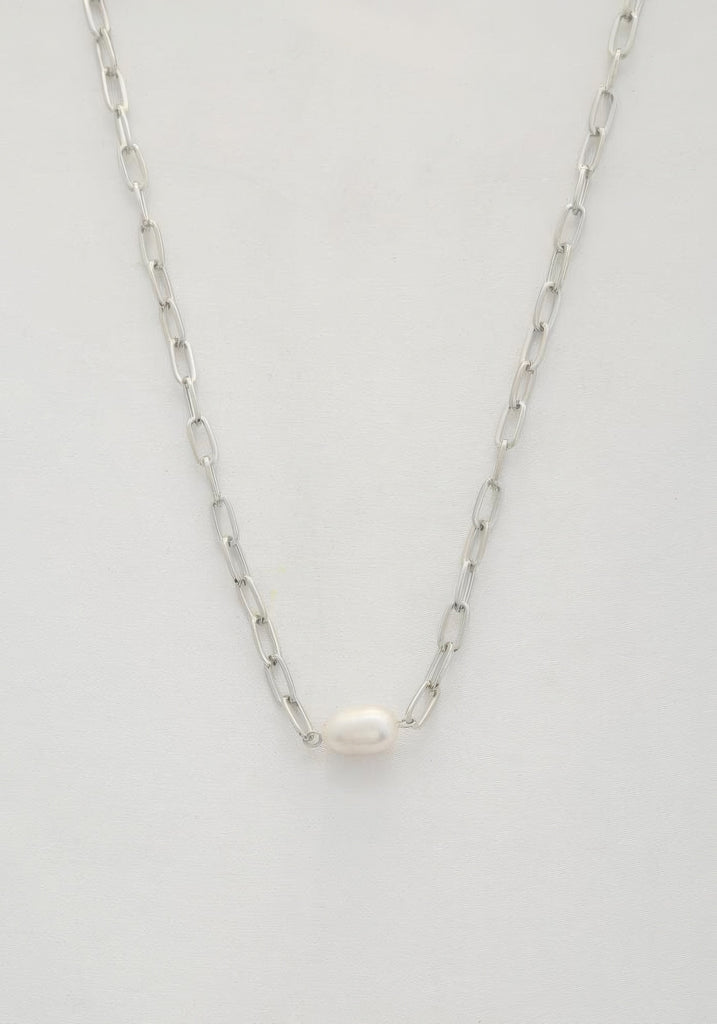 Elevate your style with the Pearl Bead Oval Link Necklace in both Gold and Rhodium. Add it to your cart now and experience the perfect blend of sophistication and timeless fashion!