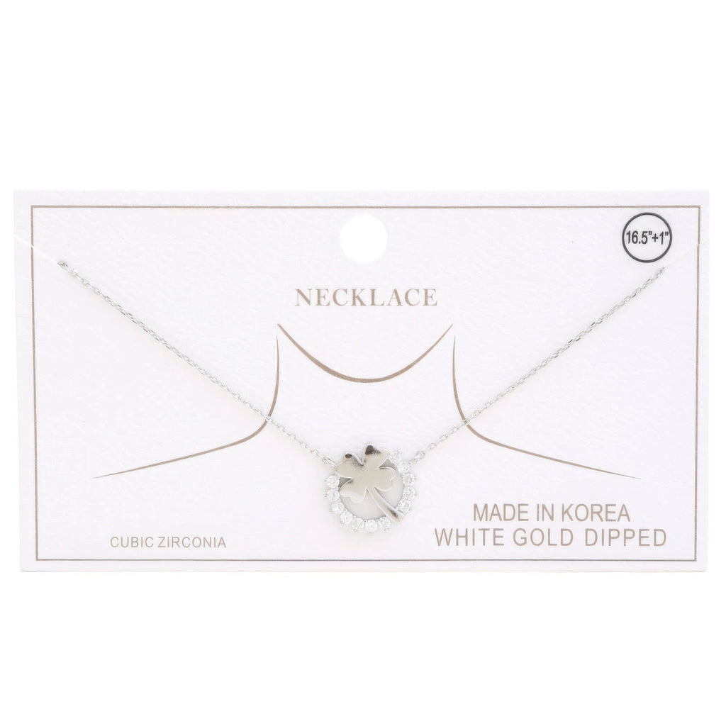 Elevate your style with our Clover Rhinestone Ring Charm Gold Dipped Necklace in your choice of Rhodium/Gold or Gold. Add it to your jewelry collection now and let your personality shine!