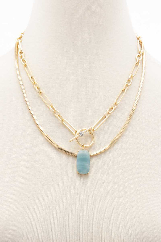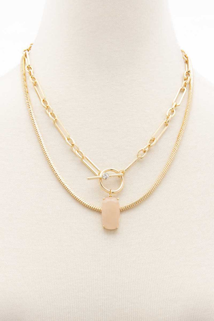 Oval Stone Toggle Clasp Layered Necklace