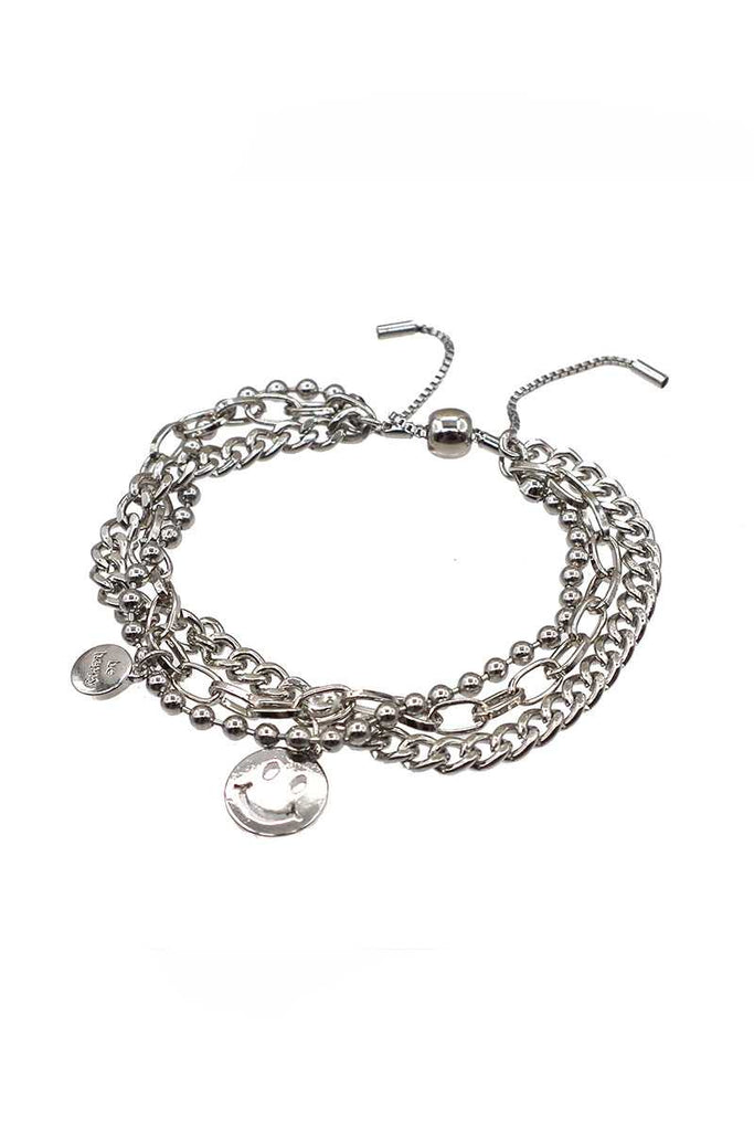 This bracelet stands out with its layered design and charming smile pendant, creating a trendy and positive accessory suitable for various occasions.