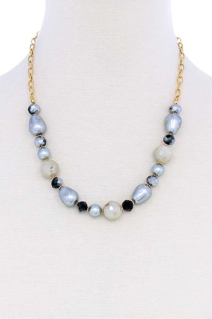 Elevate your style with the Modern Beaded Trendy Necklace in Grey and Peach. Add it to your collection today and make a fashion statement wherever you go!