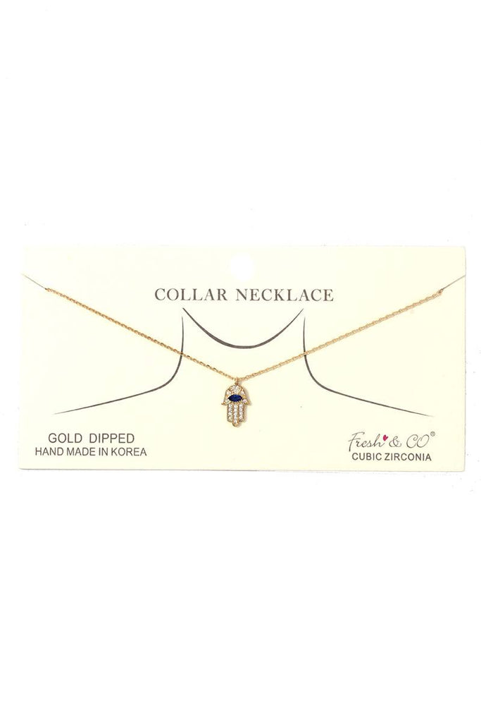 • The Hamsa Hand Charm Collar Necklace comes in a standard size suitable for most neck sizes.