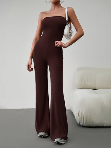New temperament casual solid color high waist wrap chest suspender jumpsuit wide leg pants