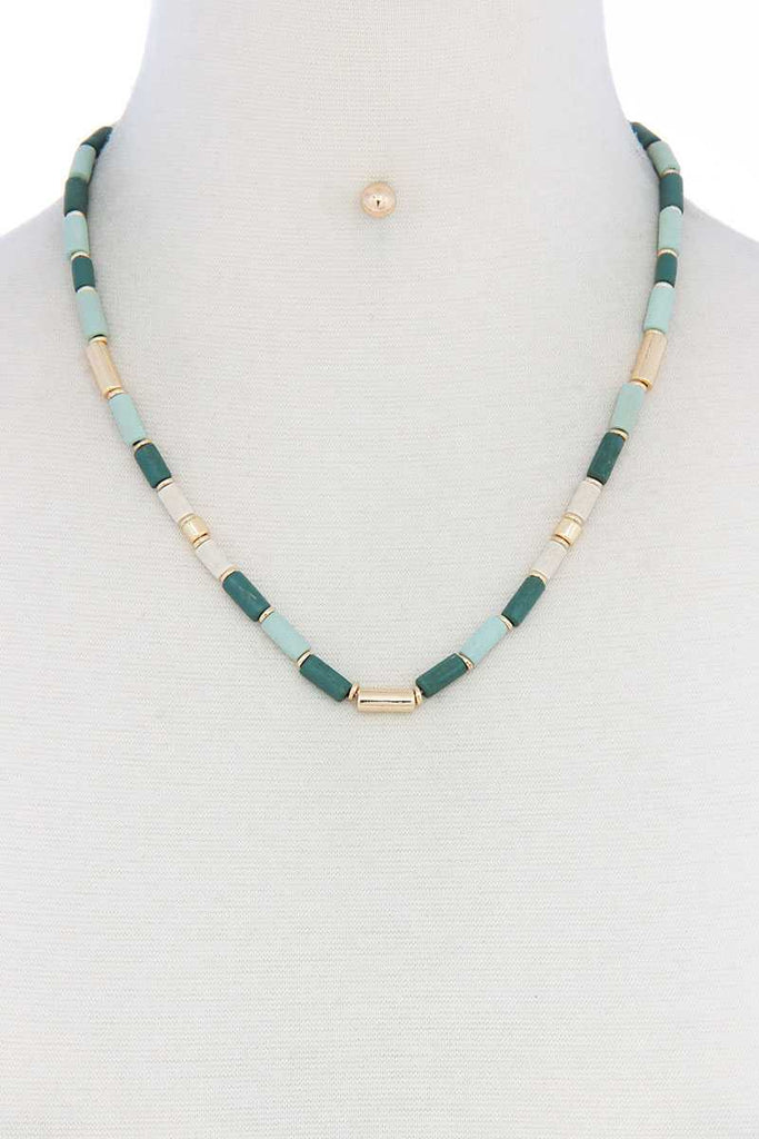 Enhance your style with our Beaded Necklace, a chic accessory that effortlessly transitions from day to night. The combination of Mint, Red, and Natural hues adds a refreshing and natural touch to your overall look.