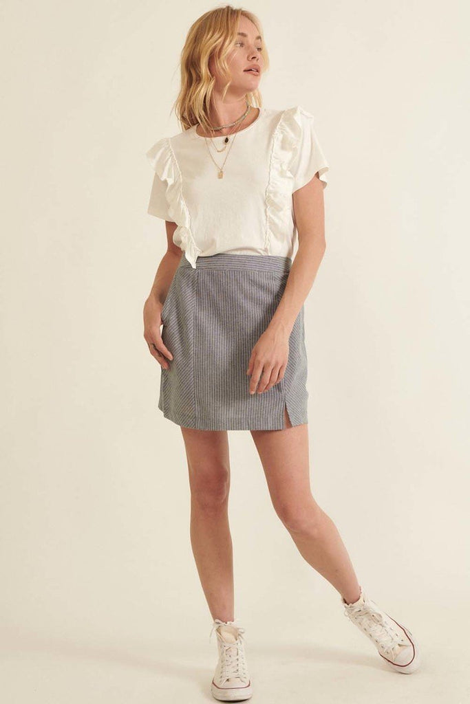 Why Choose Banded Front Waist Pinstripe Mini Skirt?