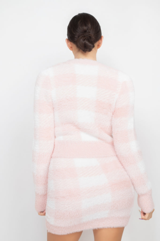 Add the Plaid Button-front Cropped Sweater Cardigan in Blush to your cart now and embrace the warmth and style it brings to your winter wardrobe!