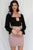Black Satin Effect Cut-out Bustier Detail Balloon Long Sleeve Crop Top