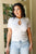 Add our Mesh Ruched Cut-out Detail Short Sleeve Top in White to your cart now and embrace the perfect blend of casual, cute, and trendy summer style!