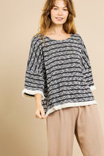 Elevate your wardrobe with the Heathered Striped Knit Bell Sleeve Round Neck Top in Black. Add it to your cart now and experience the perfect blend of style and comfort!