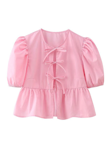 New women's hottie fashion slim fit strappy puff sleeve short sleeve shirt top