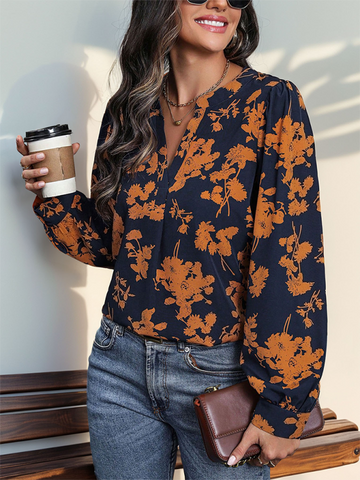 Collared Neckline Floral-print Shirt