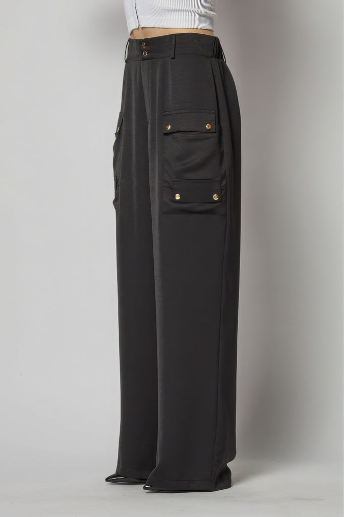 Satin Cargo Pocket Wide Leg Pants