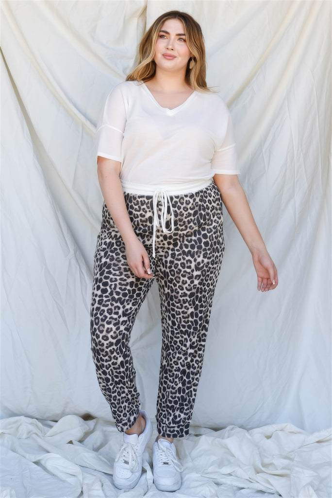 - Comfortable All-Day Wear: Tailored for maximum comfort, our Plus Brown Leopard Print Two Pocket Joggers Pants allow you to showcase your style with ease.