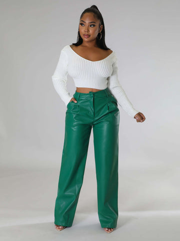 PU women's loose wide-leg pocket casual leather pants