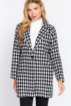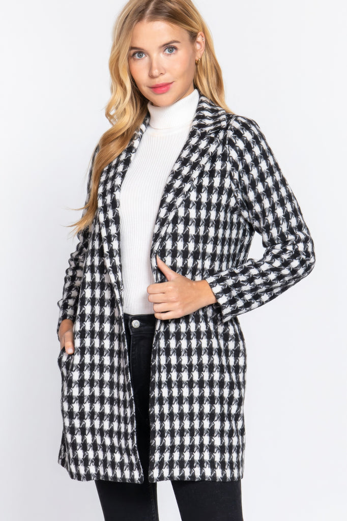 Add the Long Sleeve One Button Jacquard Jacket in White/Black to your cart now and elevate your wardrobe with this timeless and elegant outerwear piece!