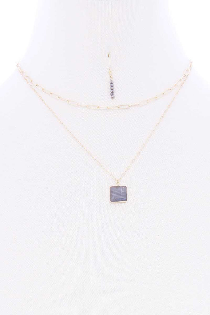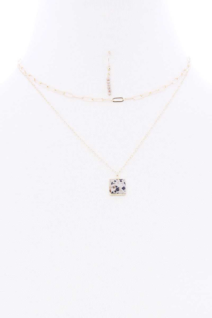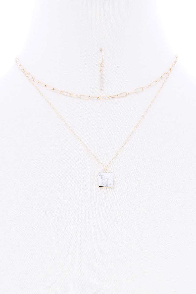 Why Choose 2 Layered Chain Metal Square Marbling Stone Pendant Necklace?