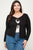 Crafted with a luxurious blend of Rayon and Spandex, this cardigan offers a perfect balance of softness and stretch, ensuring a flattering fit for all body types. Its classic black color makes it a versatile wardrobe staple, seamlessly transitioning from casual outings to formal events.