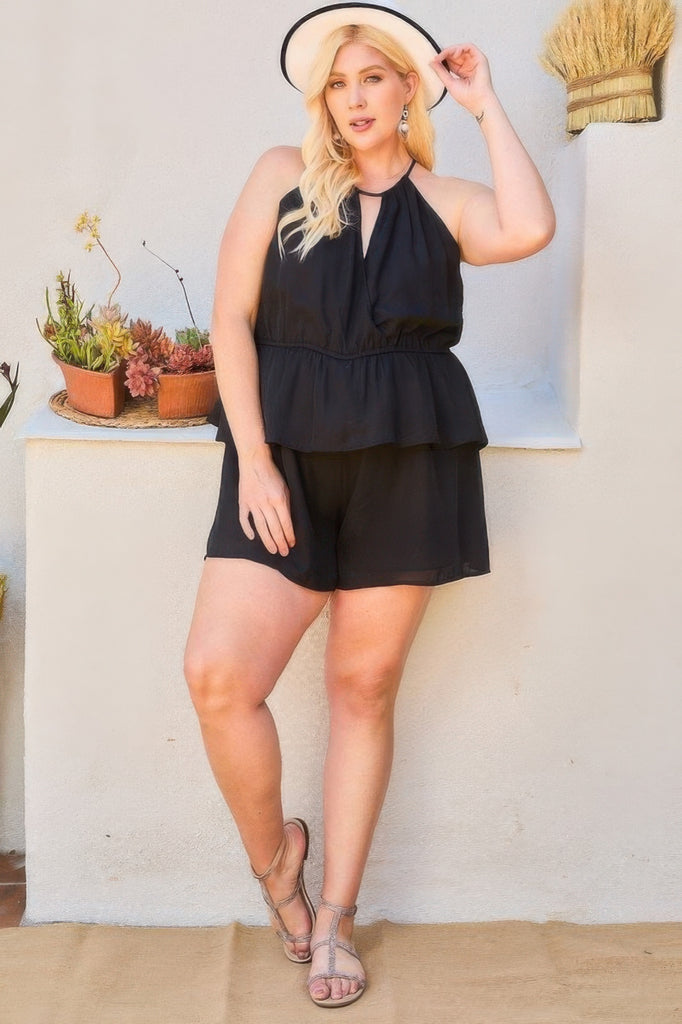 This romper stands out for its unique combination of style and comfort. The pleated waist and ruffle back detail add a fun twist, while the classic Black color makes it a timeless addition to your wardrobe that can be easily accessorized for various looks.